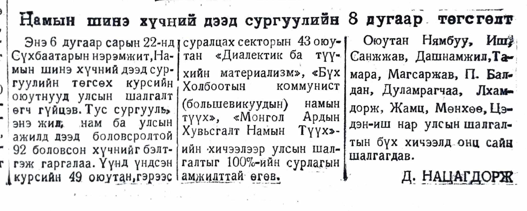 Намын шинэ хүчний дээд 8-р төгсөлтийн мэдээ