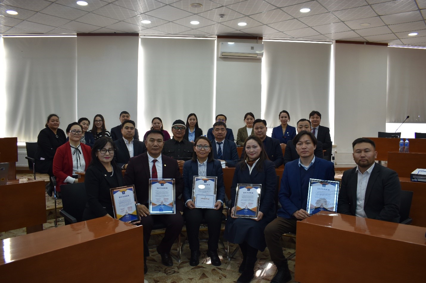 - Тус эрдэм шинжилгээний хуралд магистрант Ц. Сонинбаяр “Төрийн албан хаагчдын ажлаас халшрах хам шинж, стрессийн түвшинг тодорхойлох нь” сэдэвт илтгэлээр I байр эзлэн Удирдлагын академийн нэрэмжит шагнал буюу сургалтын 20 хувьтай тэнцэх тэтгэлгийн эрх, докторант Л.Цэвээнжав “Зах зээлээс алслагдсан байдал ба өрхийн орлого: Монгол улсын жишээн дээр хийсэн туршилтын судалгаа” сэдэвт илтгэлээр II байр эзлэн Сонсогч Төгсөгчдийн Холбооны Ерөнхийлөгчийн нэрэмжит 1 сая төгрөг, докторант М.Мянганбуу “Байгууллагын соёлын судалгааны арга зүйн асуудалд” сэдэвт илтгэлээр III байранд тус тус шалгарч, докторант Ө.Алдармаа “СӨБ-ын байгууллагын удирдах албан тушаалтны харилцааны ур чадварын үнэлгээ” сэдэвт илтгэлээр, магистрант Д.Амартайван, магистрант Н.Лувсан нар “Монгол Улсын хүн амын суурьшлын төлөв байдалд хийсэн шинжилгээ” сэдэвт илтгэлээр тусгай байранд тус тус шалгаран, мөнгөн шагнал, бүтээлийн дээжис болон академиас эрхлэн гаргадаг сэтгүүлүүд дээр бүтээлээ нийтлүүлэх эрхээр шагнуулав. Мөн Сонсогч төгсөгчдийн холбооноос энэхүү Эрдэм шинжилгээний хурал анх удаа зохиогдож байгаа бөгөөд цааш уламжлал болгон жил бүр зохион байгуулна.